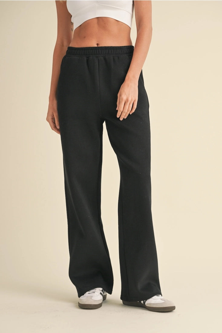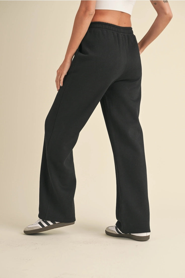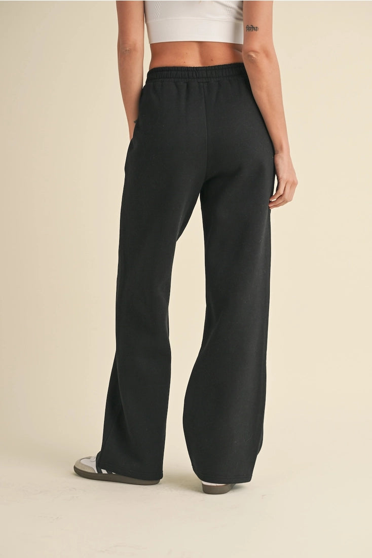 Cozy fleece sweatpants with a wide leg silhouette and side pockets.