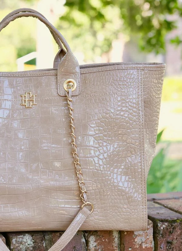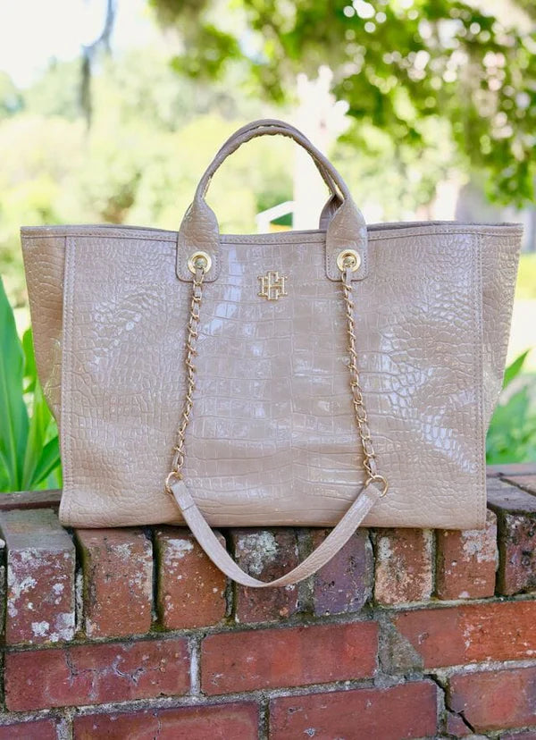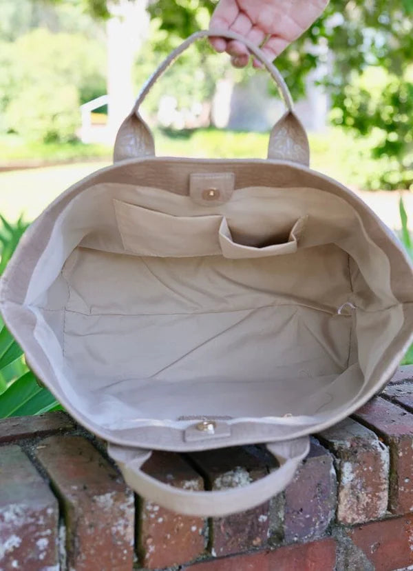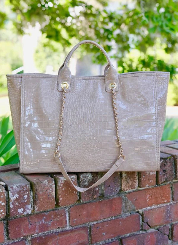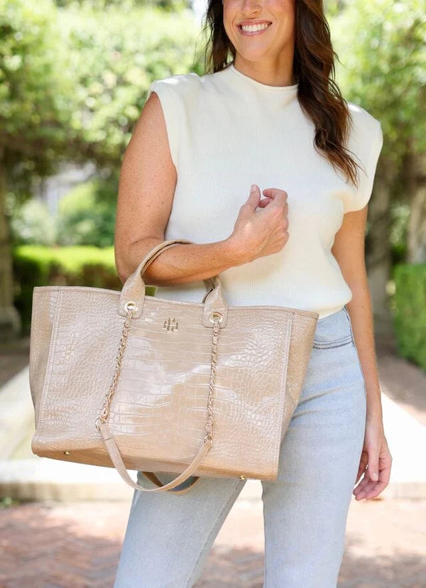 This oversized vegan leather tote is the best go-to handbag! It has two short top handles as well as two elongated braided handles to carry on your shoulder. The Caroline Hill logo is centered at the top of this bag on one side. It has a magnetic closure leading to the roomy interior of the bag. It has one zippered pocket and two open pockets inside. There are also feet on the bottom of the bag for added protection. It's the perfect size for travel, carrying a laptop, or for everyday fashion.