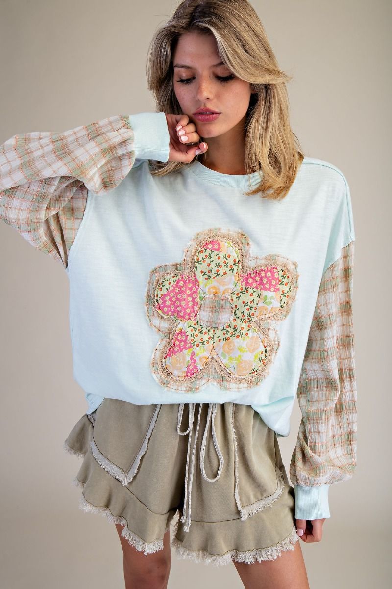 Description: FLOWER PATCH FRONT WASHED COTTON TOP