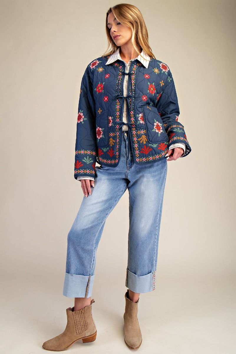 -FLORAL TRIM ON CUFFS